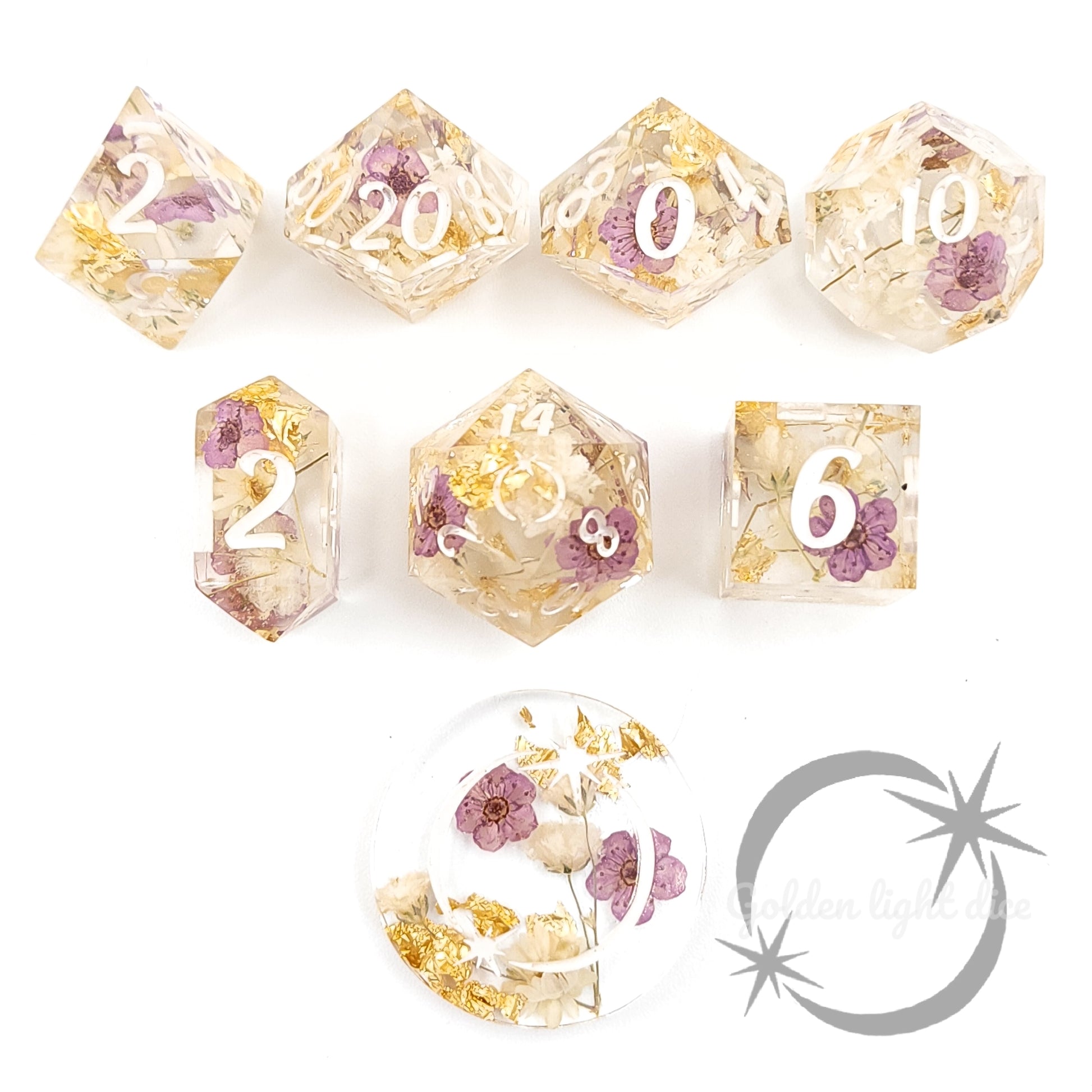 - Full 8 Pc dice set - D20, D12, D10, D%, D8, D6, D4, D2